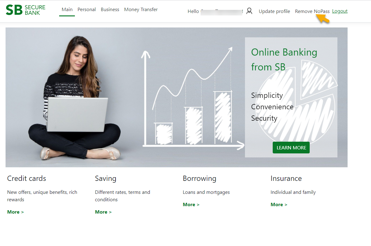 1. On the website with PasswordFree integrated into it, click Remove NoPass.