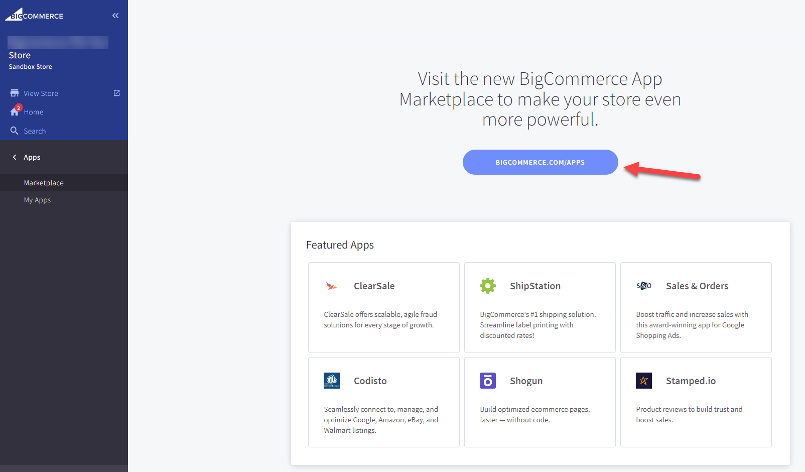 3. Enter the BigCommerce marketplace.