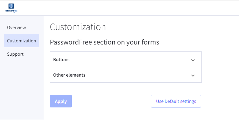 2) Customization. This section describes how the PasswordFree buttons and other elements can be customized.