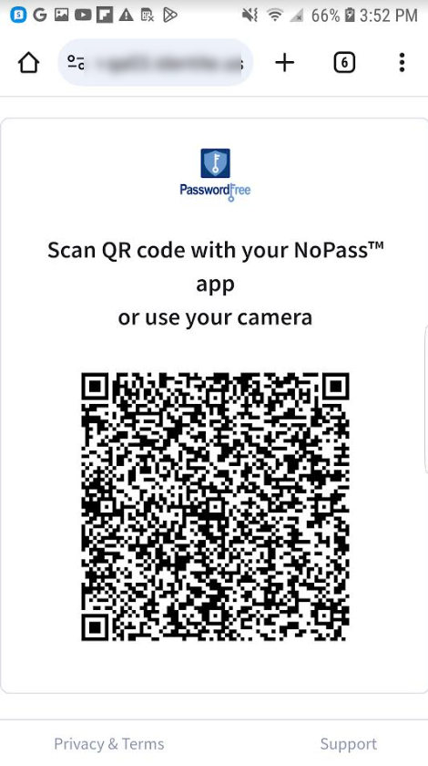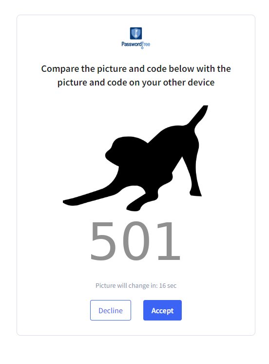 4) After the second authentication factor is accepted, a random picture and a 3-digit code are displayed on your authentication page in the browser and in your PasswordFree mobile app.