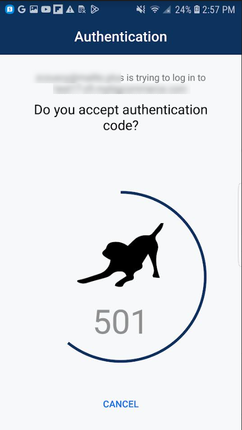 - You you haven't initiated this authentication, tap Cancel in your mobile PasswordFree app. The Authentication canceled notification is displayed in your browser and you return back to the BigCommerce webstore home page.