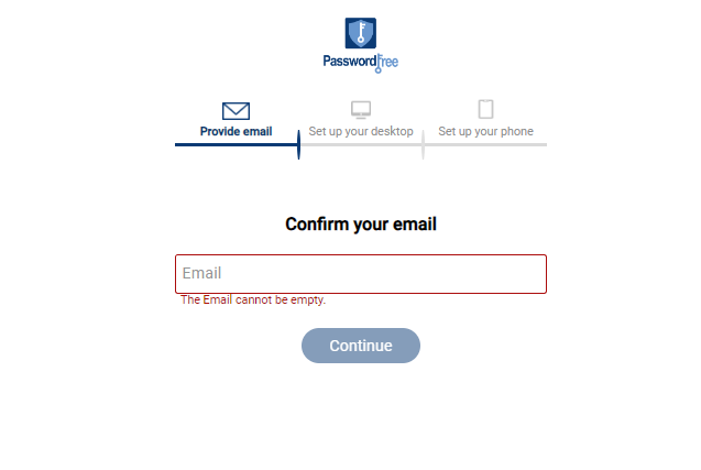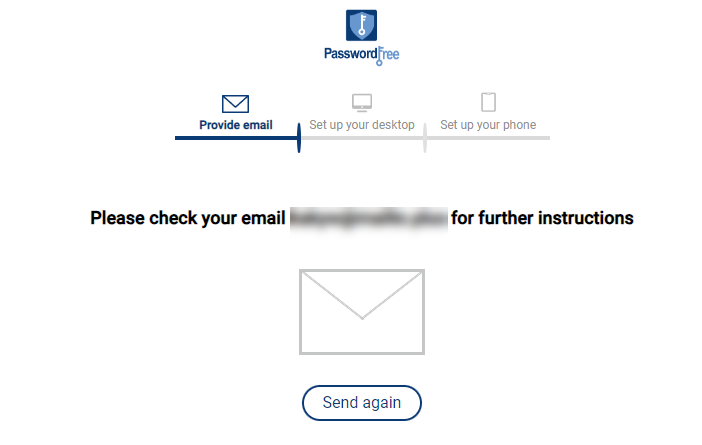 6) If you enter the correct email address, you are redirected to the following page where you will be able to download and install the PasswordFree desktop app. To continue, go to point 2 below.
