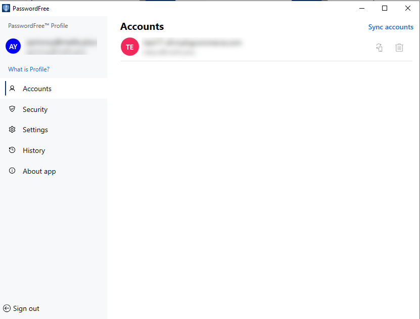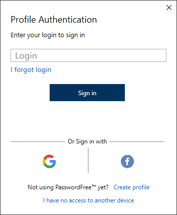 - Sign in to your PasswordFree Profile registered in the browser. See Sign in to your PasswordFree Profile from the browser