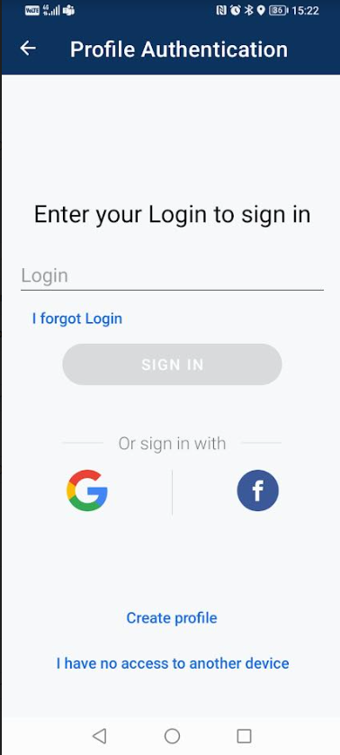2) On the Profile authentication screen, enter your email address and tap Sign in.
