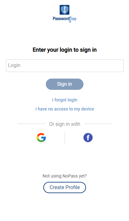 You can sign in to your PasswordFree Profile using your PasswordFree login or your social media (Google and Facebook) login.