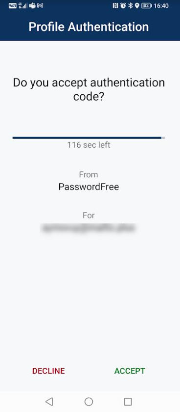 4. To sign in to your Profile in your PasswordFree mobile app, follow the instructions in Step 2. Perform the following actions: