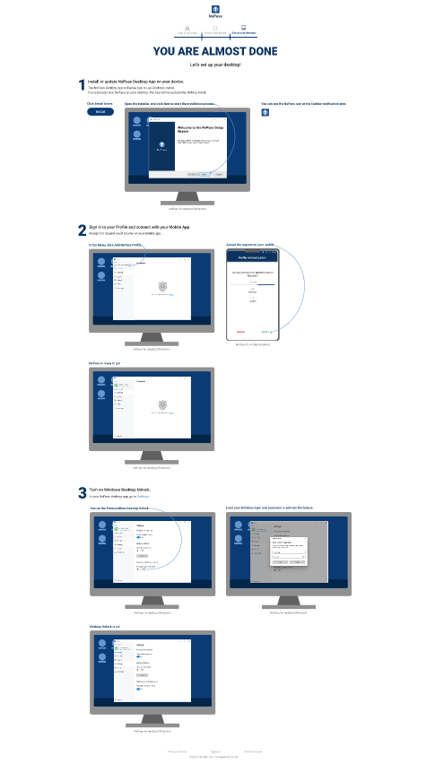 1) After you have signed in to your PasswordFree Profile, you are redirected to the page with the instructions to download and install your PasswordFree Windows app.