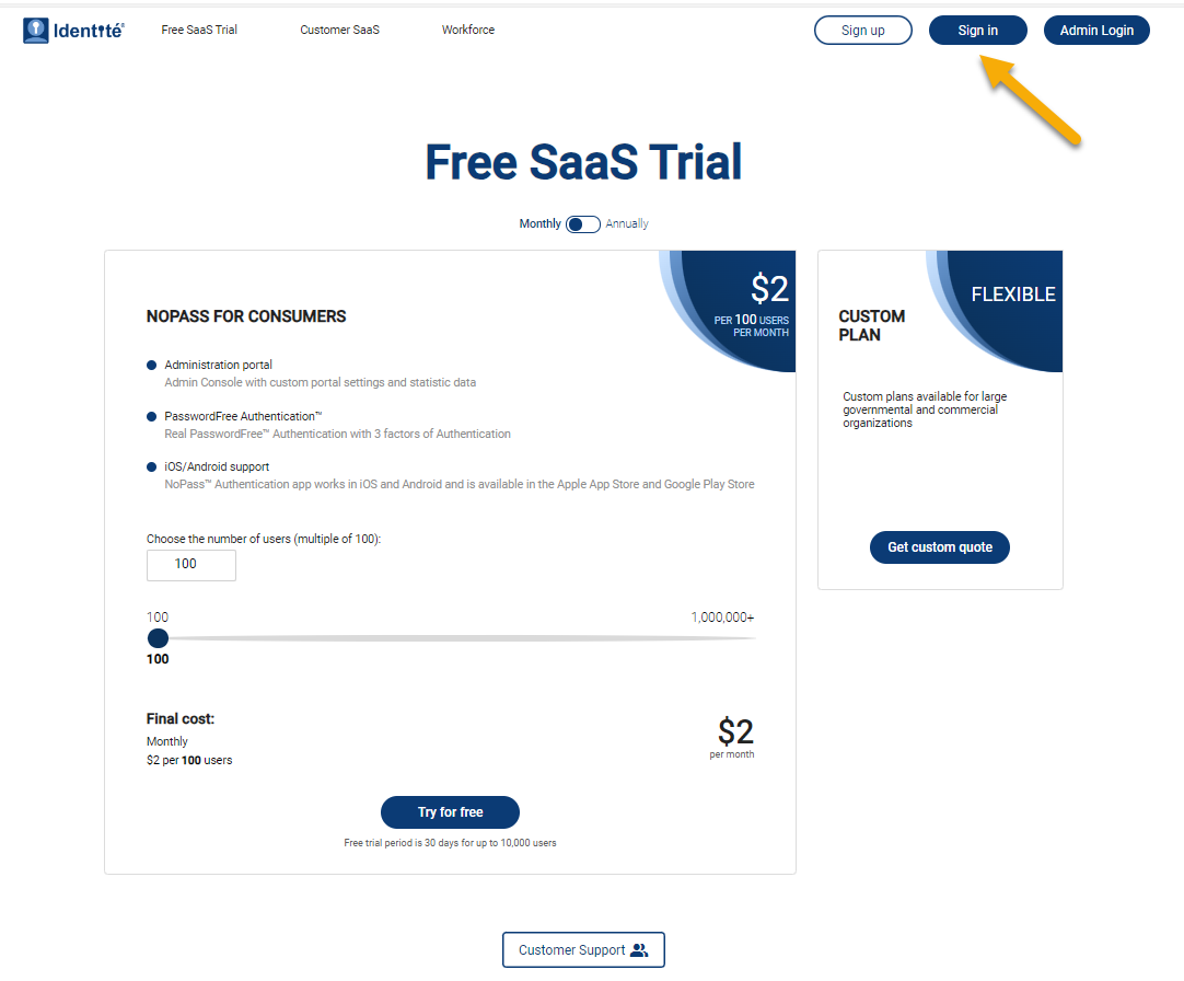 - On the www.nopass.us page, click Sign in.