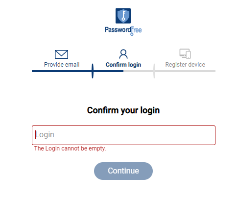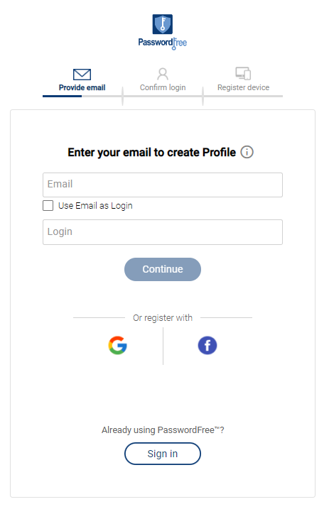 Your PasswordFree account is created simultaneously with installing the PasswordFree desktop app on your PC and is displayed both in your PasswordFree desktop app and on the website.