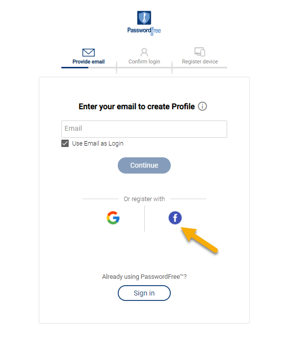 2. You can register your Profile using either your email address or social media login. Perform one of the following actions: