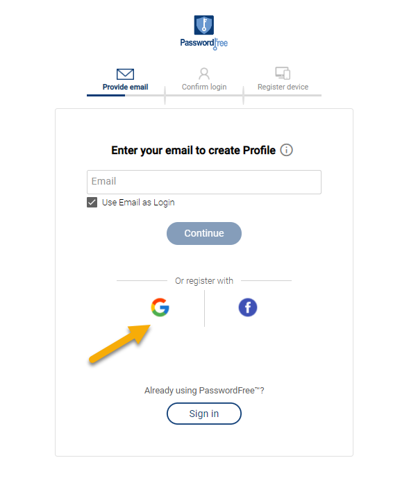 You can download the PasswordFree app for mobile devices from the marketplaces (Google Play and App Store for Android and iOS devices, respectively) and during the PasswordFree Profile / account registration.