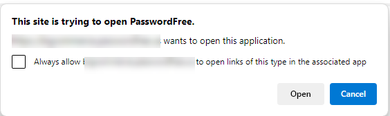1) On your Windows PC, a pop-up window is displayed. Allow the current site to enable the download of the PasswordFree app.