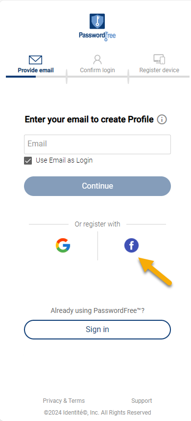 i. On your desktop computer, you can create your Profile with the help of your PasswordFree mobile application or your PasswordFree desktop application. To do so, perform one of the following procedures.