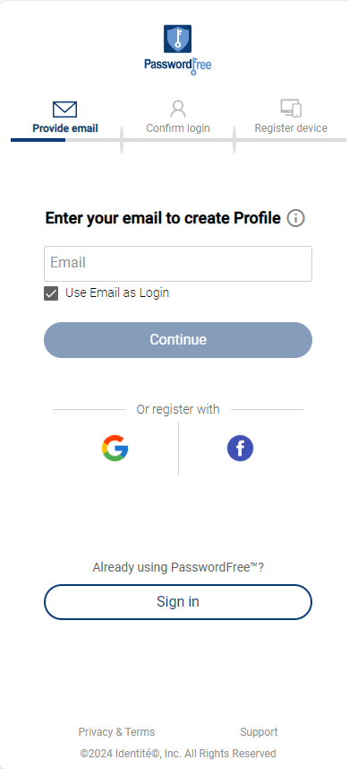 i. On your desktop, fill in the Email field, perform one of the following actions, and click Continue.