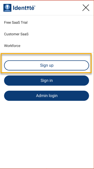 - On your mobile device, tap the hamburger menu in the upper right corner of your screen and tap Sign up.