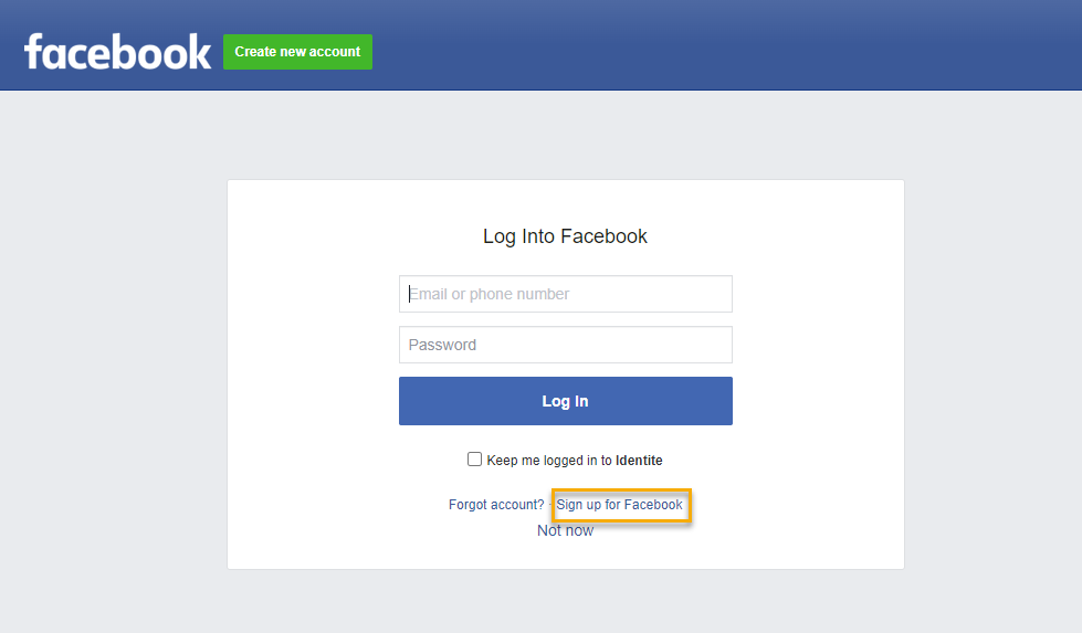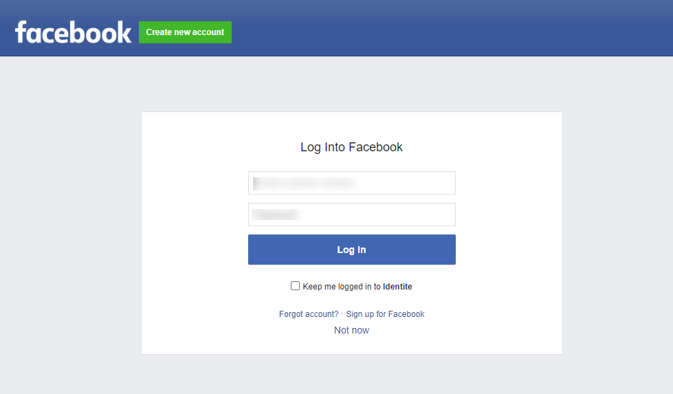 - Enter the existing Facebook account by providing your Facebook login and password and clicking Log in.