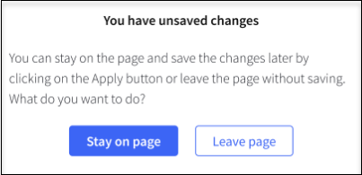 11. To return to unsaved changes, click Stay on page and click Apply. To discard the unsaved changes, click Leave page.