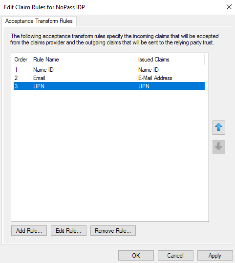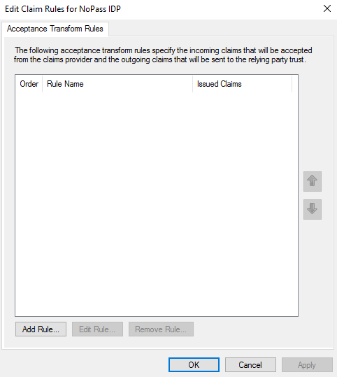 - In the Edit Claim Rules for NoPass™ IDP dialog box, select Add Rule.