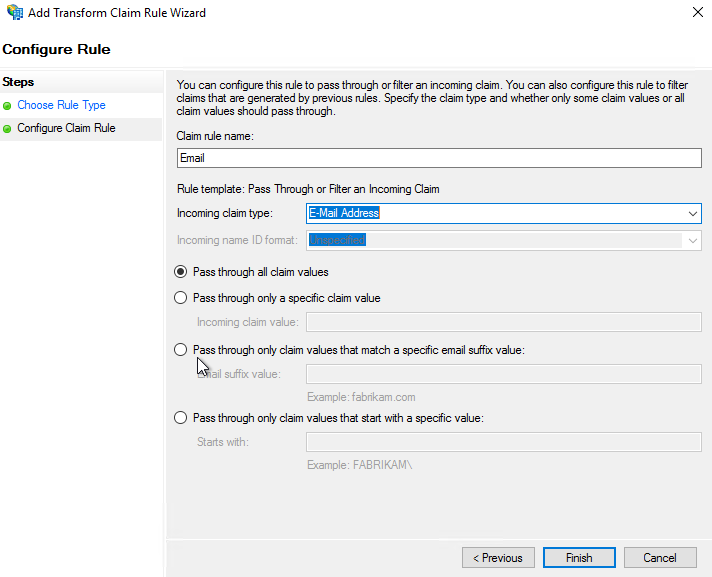 - In Finish, select Open the Edit Claim Rules dialog…, and select Close.
