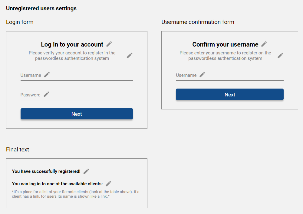 - In the Username confirmation email group, set Email subject, Email text, Confirmation link, and Account expiration values.