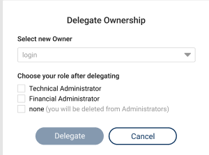 3. Select the Administrator from the drop-down list of logins or enter the login of the Administrator you want to delegate Ownership to.