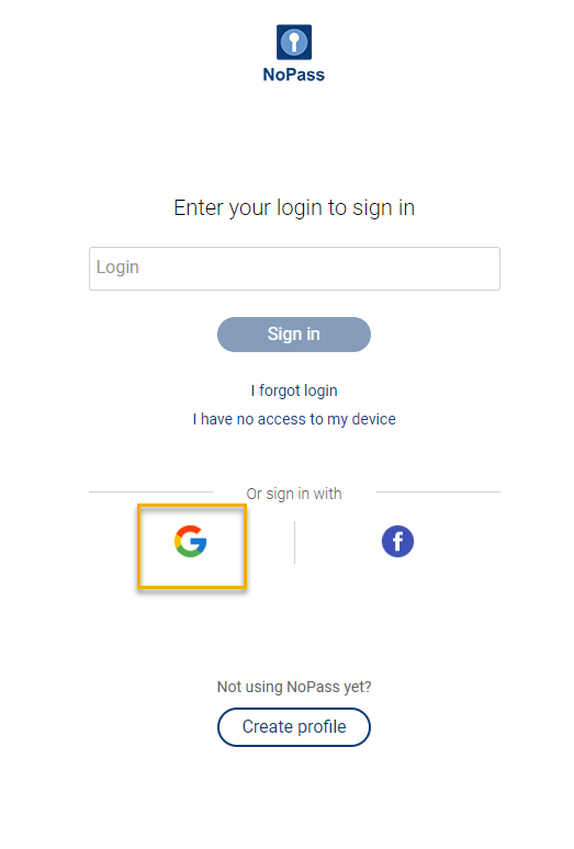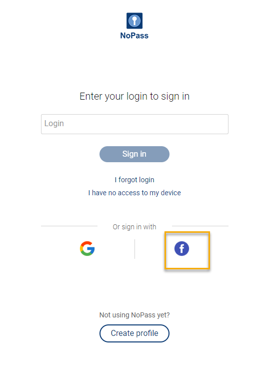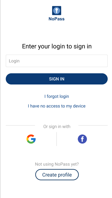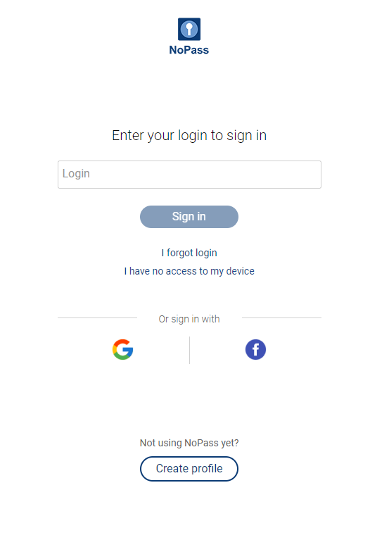 To sign in to the already existing NoPass™ Profile on the NoPass.us page, go to Sign in to your Profile.