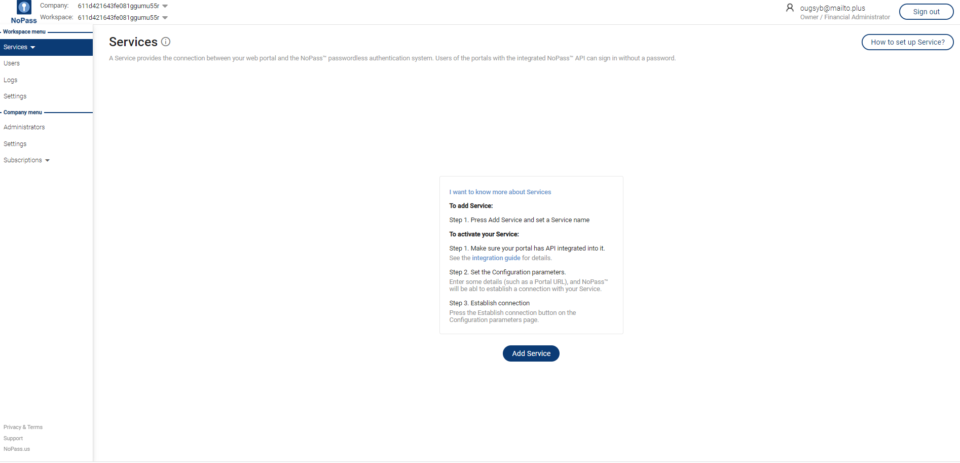 As an administrator, you can use the NoPass™ Admin Console for managing services, user accounts, assigning roles, and managing subscriptions.