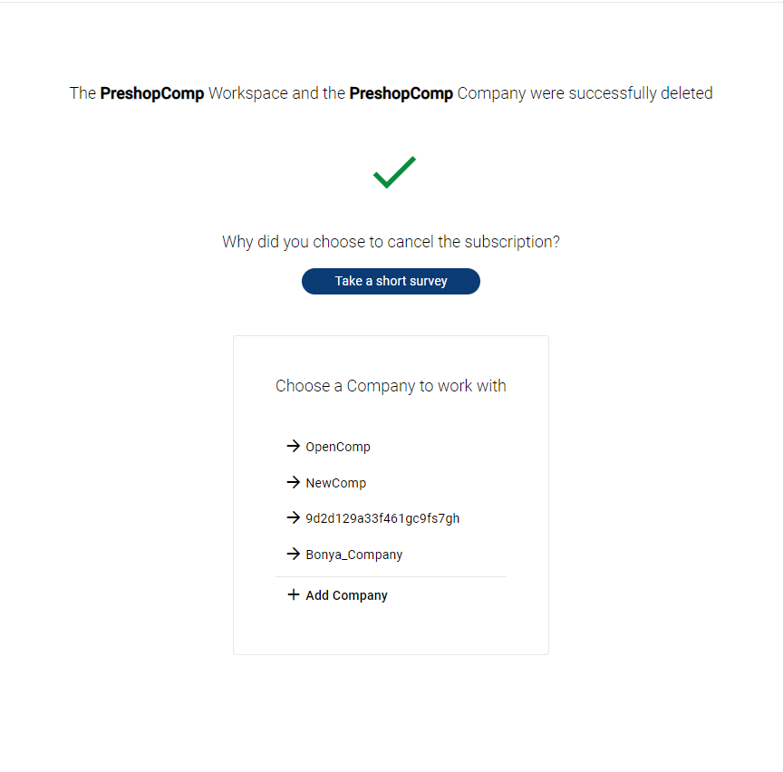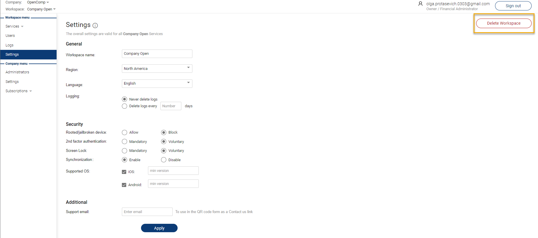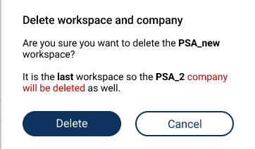 Your first Workspace is created automatically after you create your first Company. For more details, see the Company management. You can also add a new Workspace within the frames of your Company, manage the Workspace settings, or delete the Workspace.