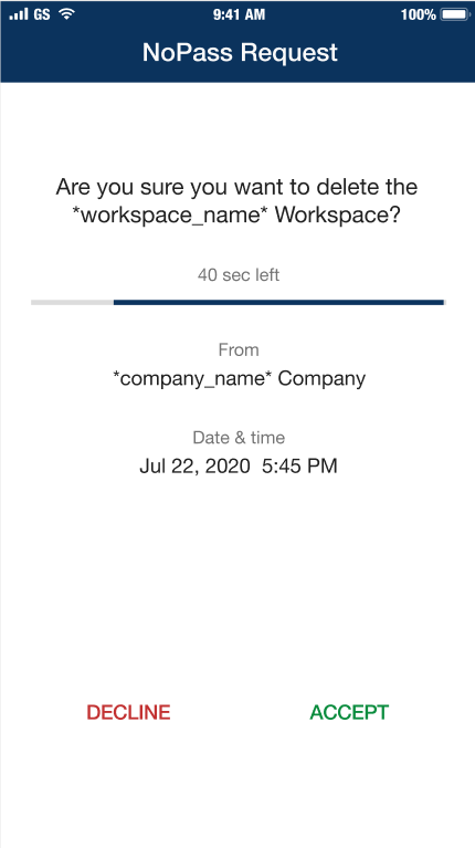 6. Tap Accept on the push notification on your mobile device or click Accept in the NoPass™ Desktop application.