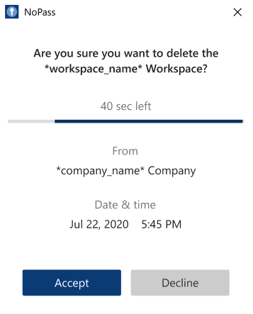 2. After you click Delete, a push notification shall be sent to your NoPass™ mobile and desktop application.