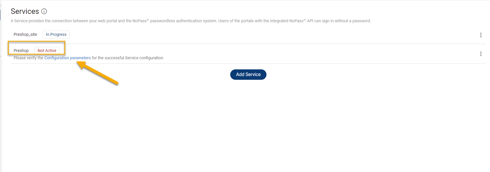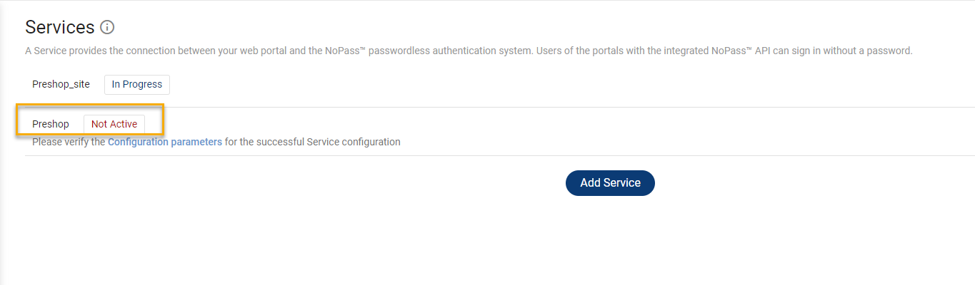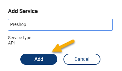 3. Let's use one of the NoPass™ demo portals - www.preshop.idenite.us - to create the service. Fill in the Service name box with the name of the portal: Preshop. Then click Add.